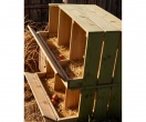 Chicken nests designed for the well-being of the hens and the comfort of the owners.